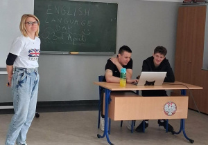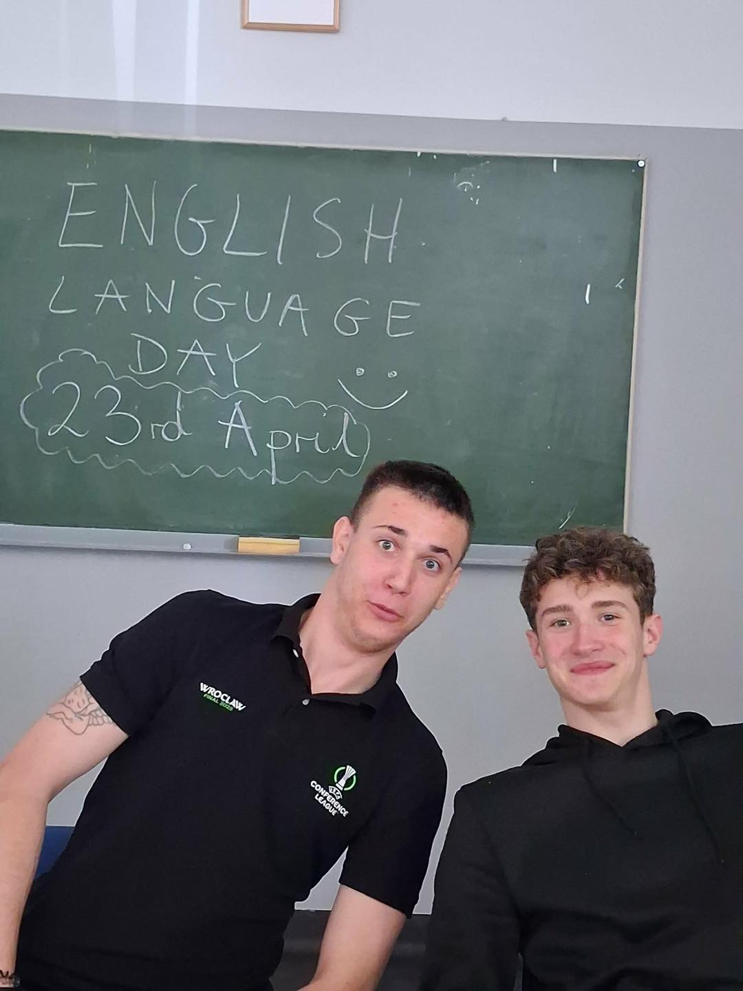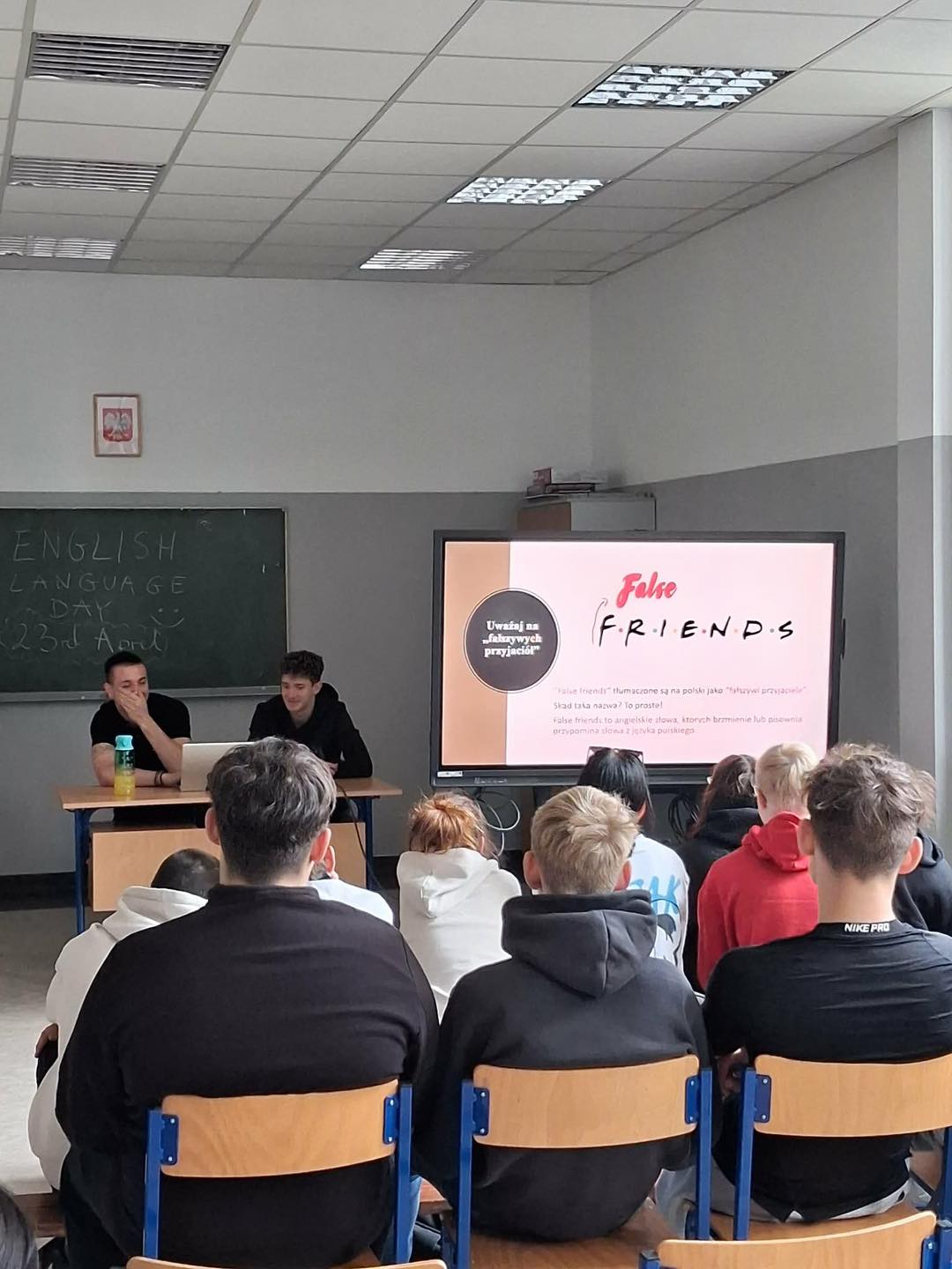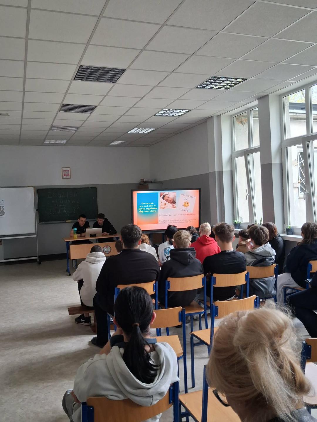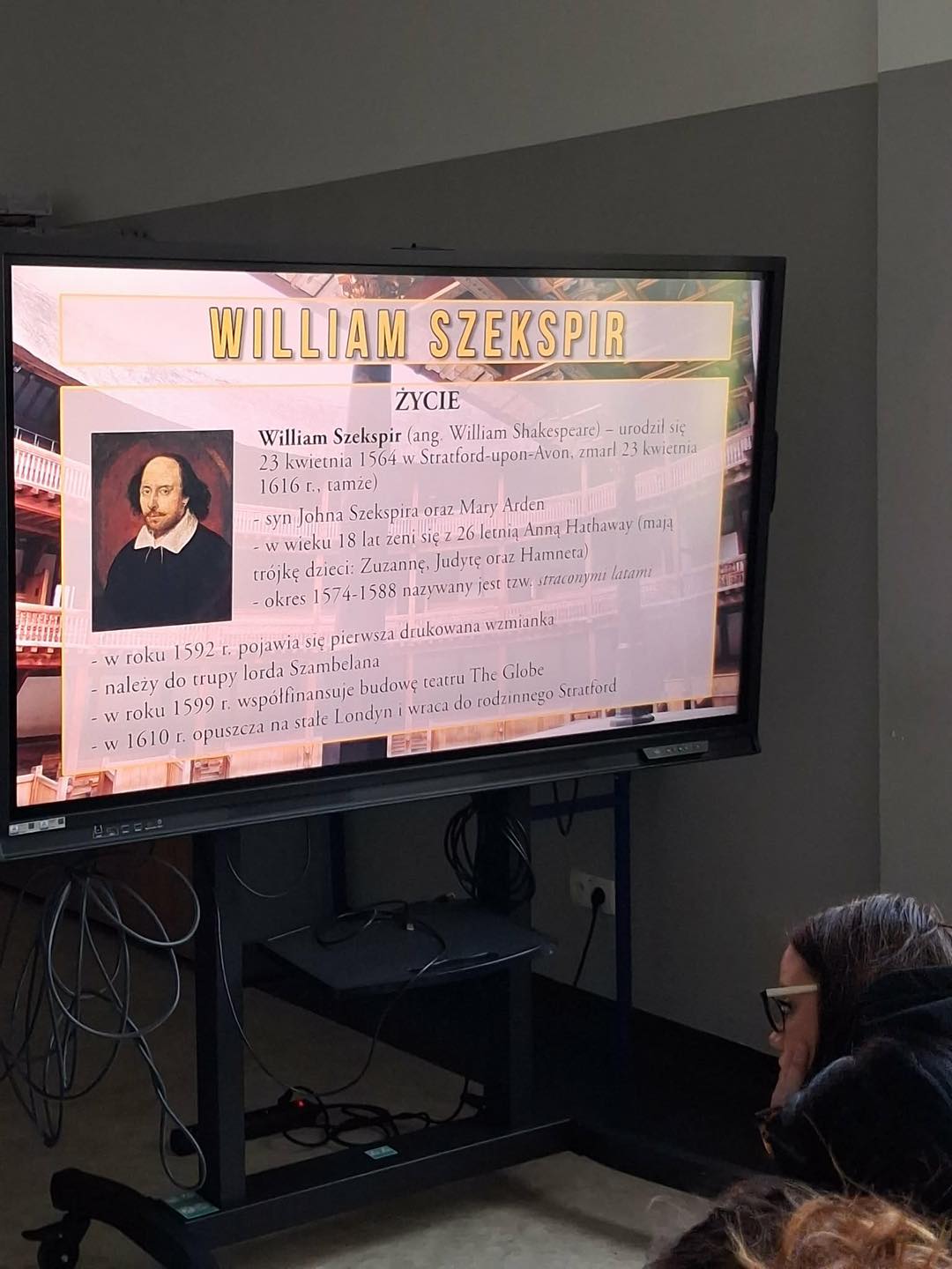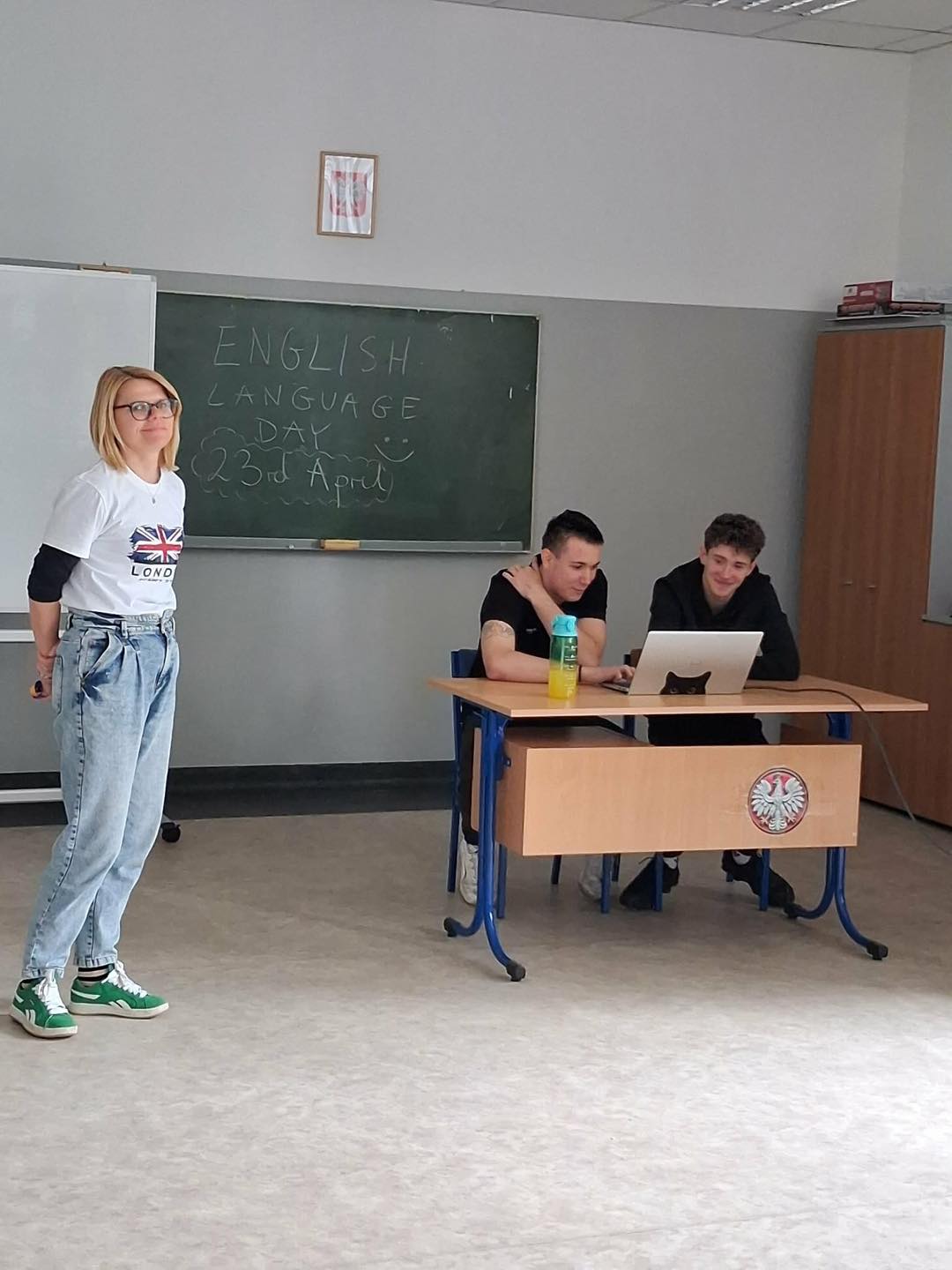Z tej okazji nasi uczniowie, Seweryn i Bartek, przy wsparciu nauczycielki języka angielskiego, przygotowali prezentację multimedialną pt. „Ciekawostki o języku angielskim”. Po jej wysłuchaniu uczestnicy obejrzeli krótki film, który przybliżył postać Williama Szekspira.