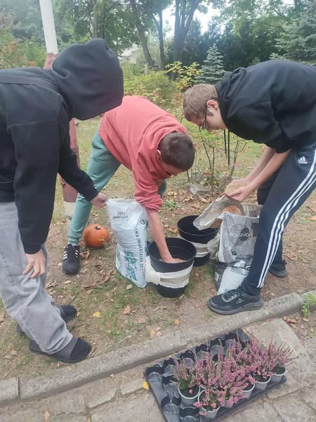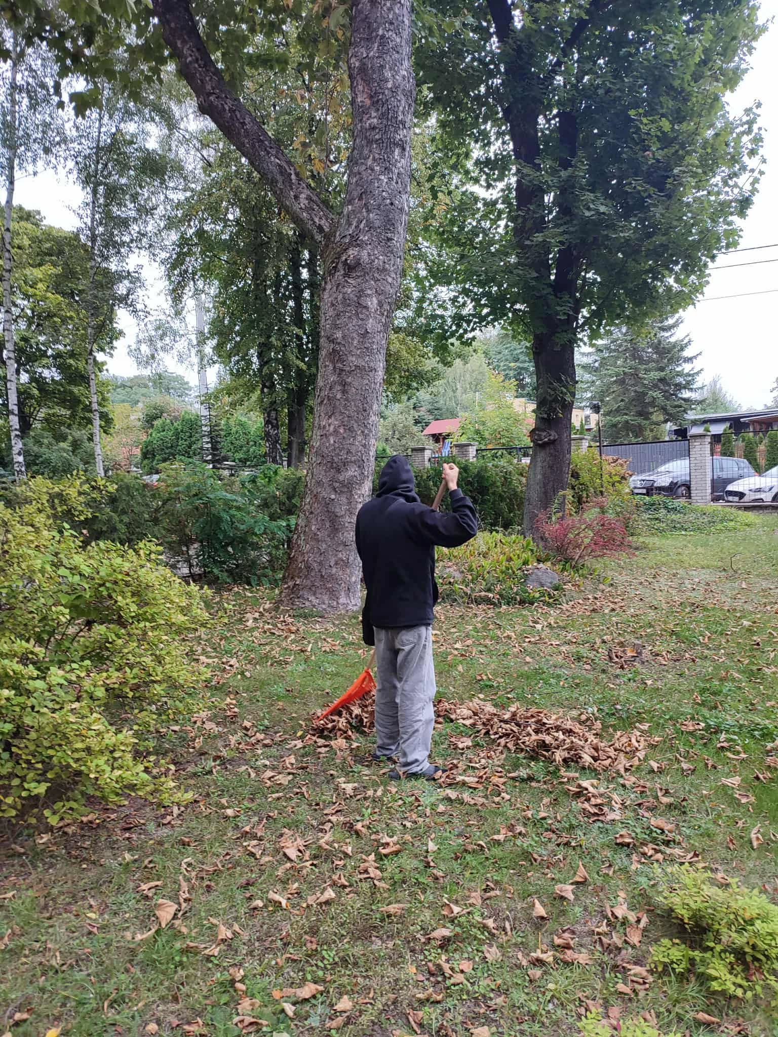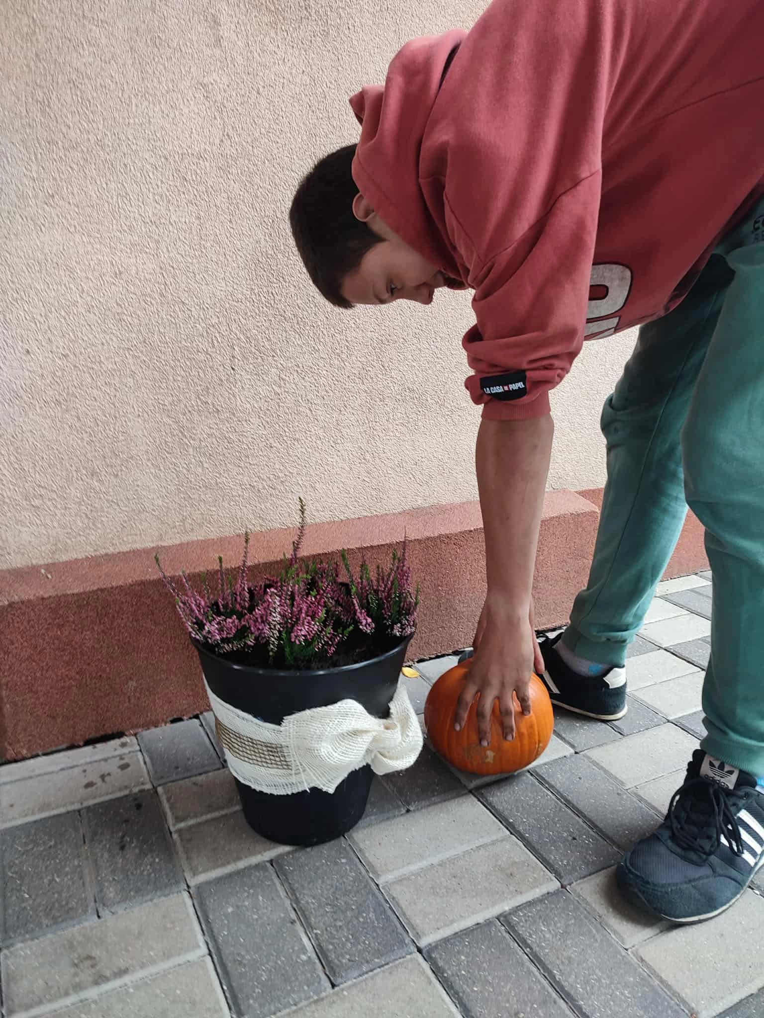 Wraz z nadejściem jesieni chłopcy z grupy drugiej, wspólnie z panią Anią rozpoczęli jesienne porządki w ogrodzie. Nie zabrakło miłego akcentu, który będzie witał naszych gości przy wejściu
