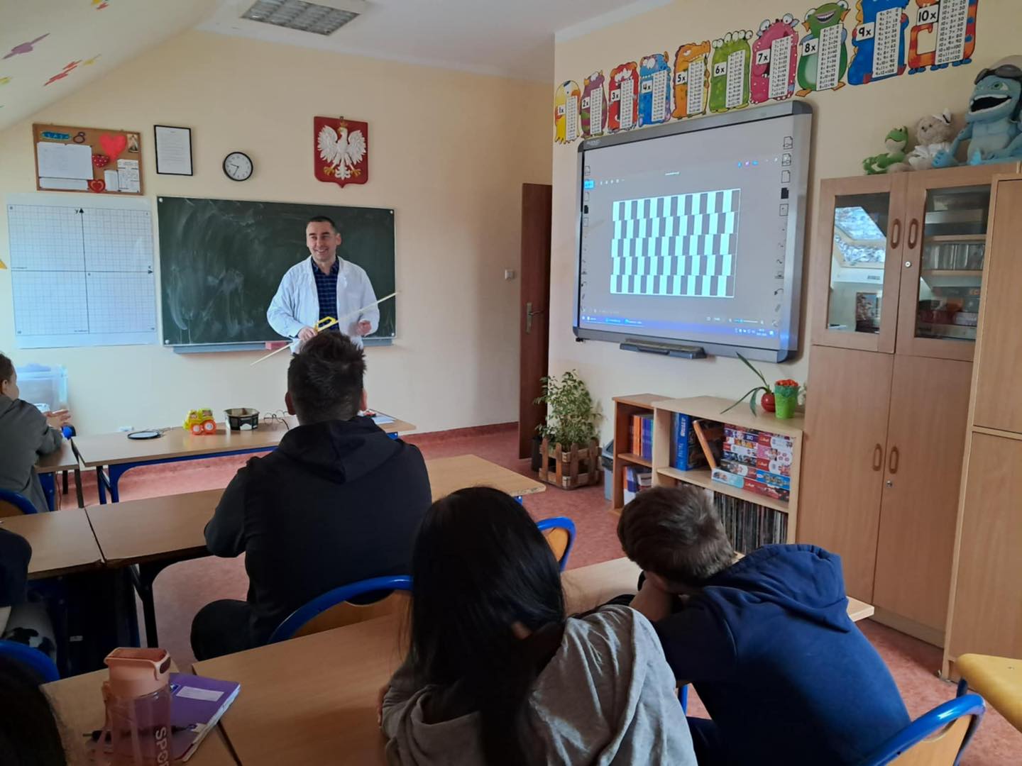 Pan Remigiusz zainteresował uczniów doświadczeniami i udowodnił, że oko ludzkie można oszukać.