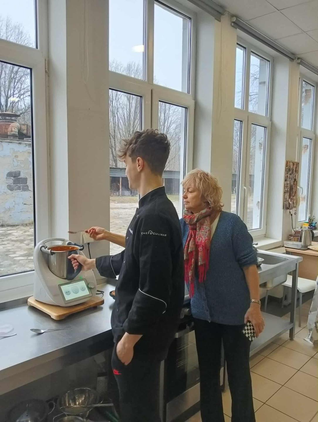 Uczniowie wykazali się dużym zaangażowaniem przy produkcji tego przysmaku. Największą ciekawością wykazała się nasza szkolna pani pedagog, pani Irenka - zadawała bardzo dużo pytań.