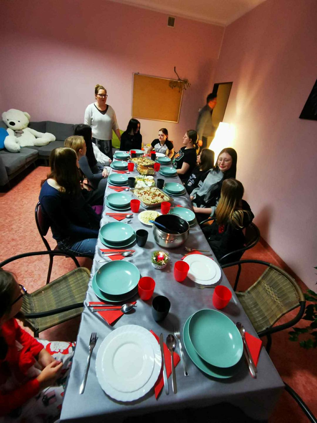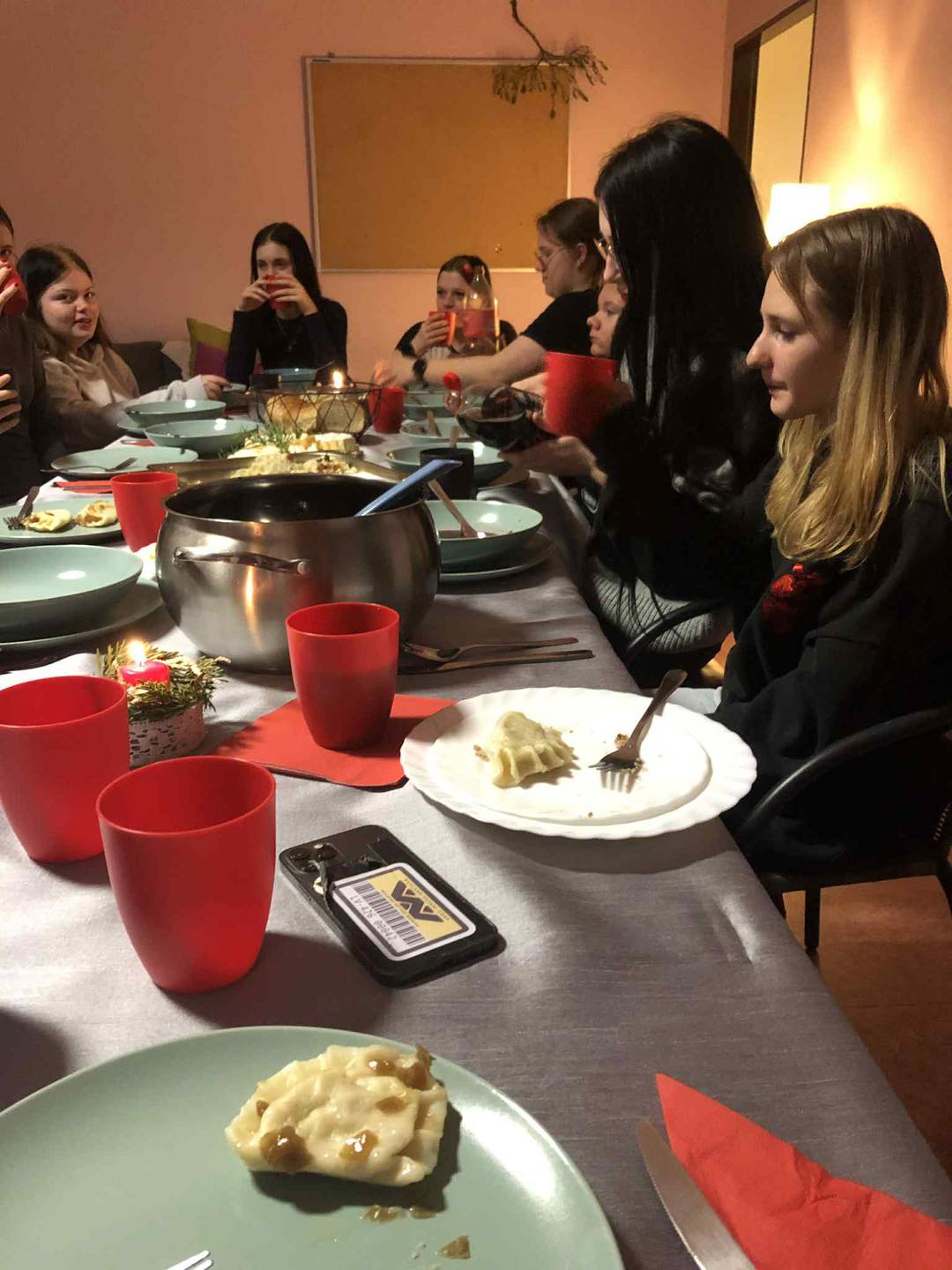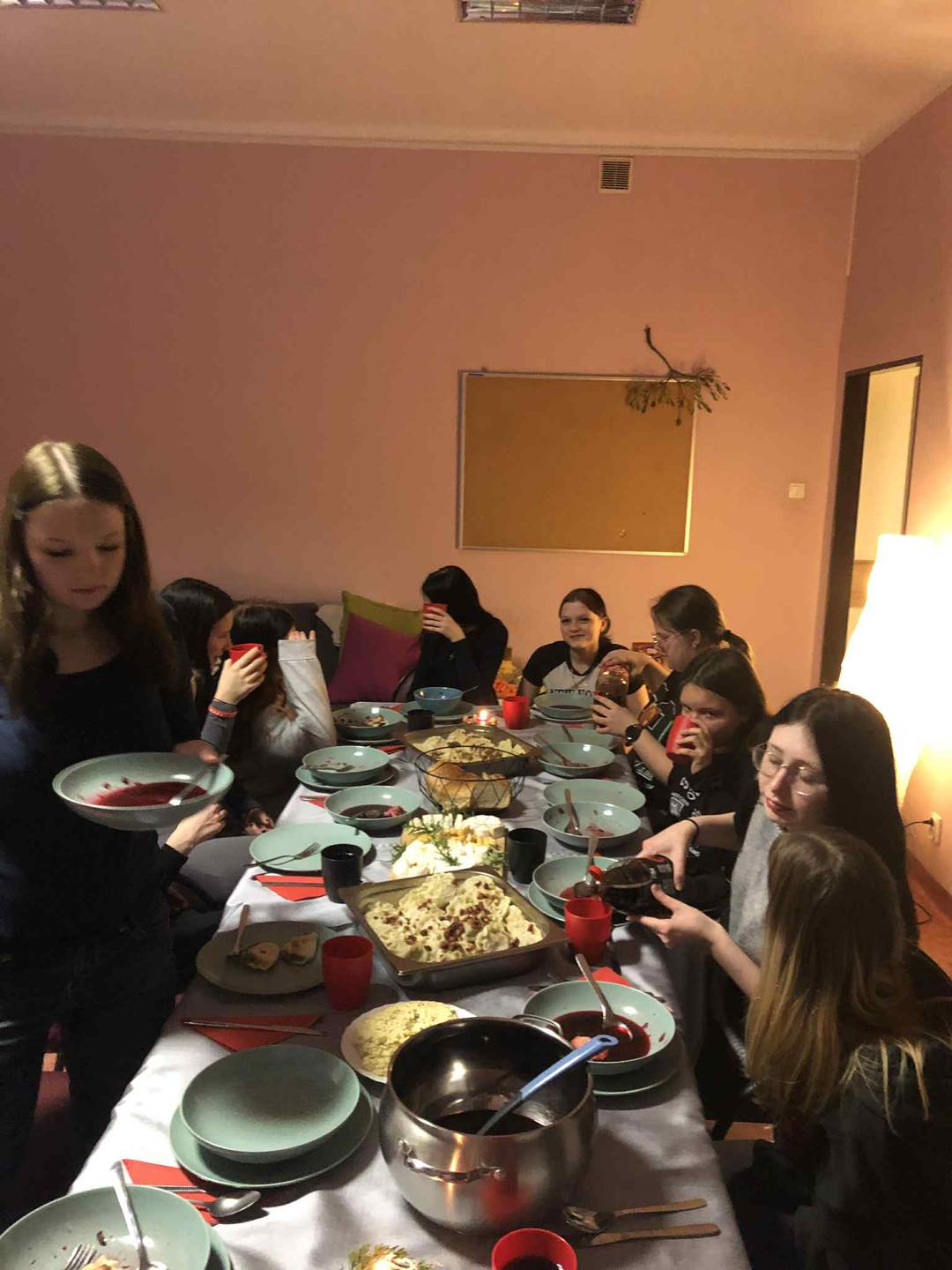 Wczoraj tradycyjnie odbyła się biesiada przedświąteczna w grupie 4 . Okres Świąt to okazja do spotkań i robienia sobie drobnych przyjemności również tych kulinarnych . U nas zagościły w tym roku pyszne pierogi ruskie i z mięsem, barszcz czerwony, deska serów, masa owoców marchewka i kalarepka specjalnie dla Łucji.